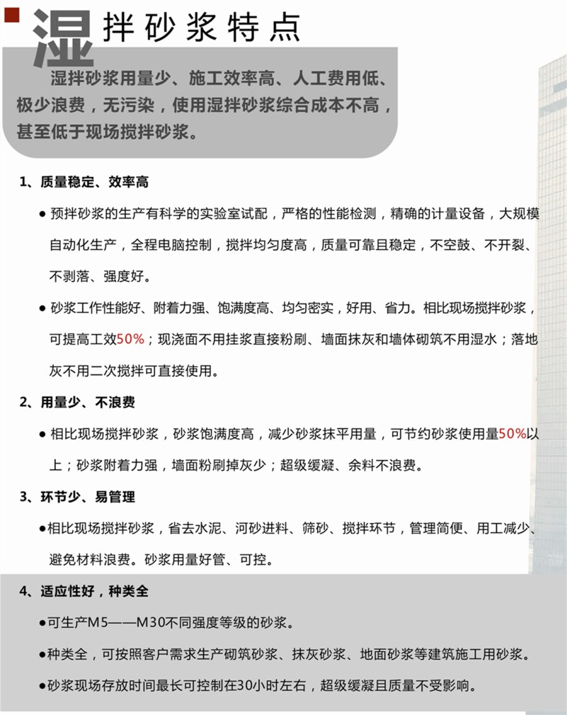 濕拌砂漿特點